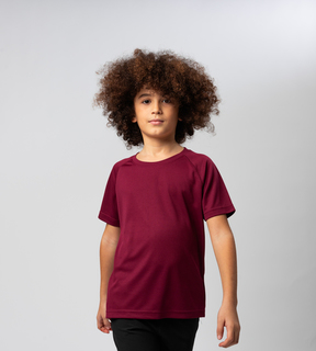 Ez a gyerek technikai póló 100% mikroperforált poliészterből készült, ami kiváló nedvességelvezetést és gyors száradást biztosít – így mindig frissnek és magabiztosnak érezheted magad edzés közben is.